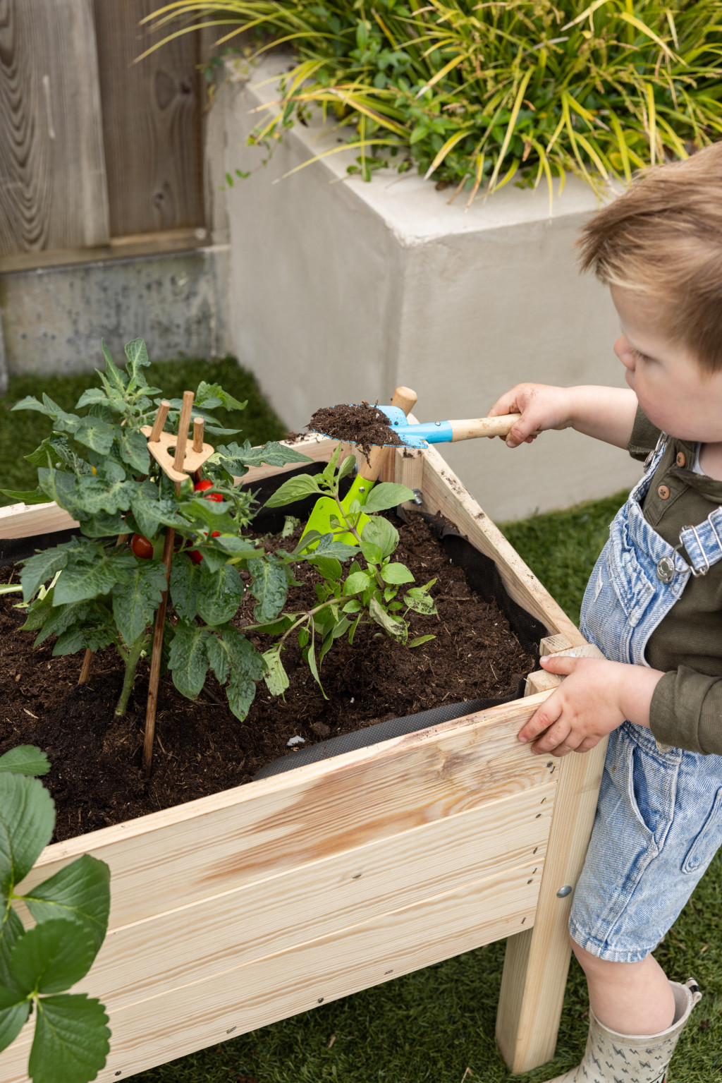 Fából készült magaságyás gyerekeknek. Praktikus, kisebb méretű ágyás létrehozására alkalmas, amely a kisgyerekek számára is könnyen elérhető. Így a kicsik is könnyen elsajátíthatják a növények megfelelő gondozásának alapjait. Figyelmüket leköti az ültetés, a locsolás, a növények növekedése. Sikerélményt szerezhetnek saját kis magaságyásuk ápolásával. A láda űrtartalma 65 liter.