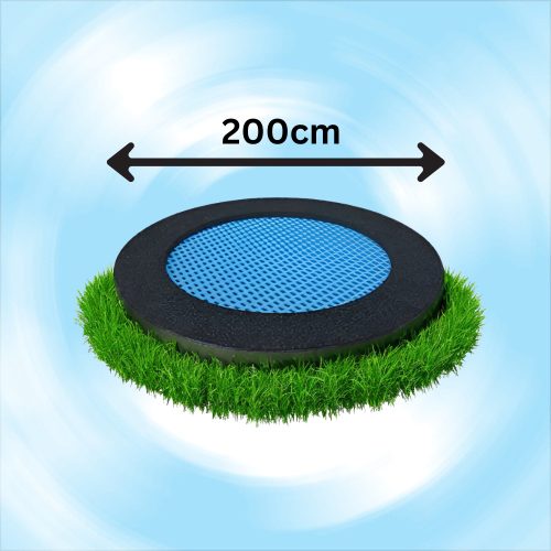 The public version of the trampoline is already well known in home gardens. The jumping surface is flush with the surface of the playground, and a 40 cm deep cavity is created under the lamellar flexible surface, which allows the downward movement of the jumping surface. For safety, the trampoline is surrounded by a 40 mm thick rubber mat.